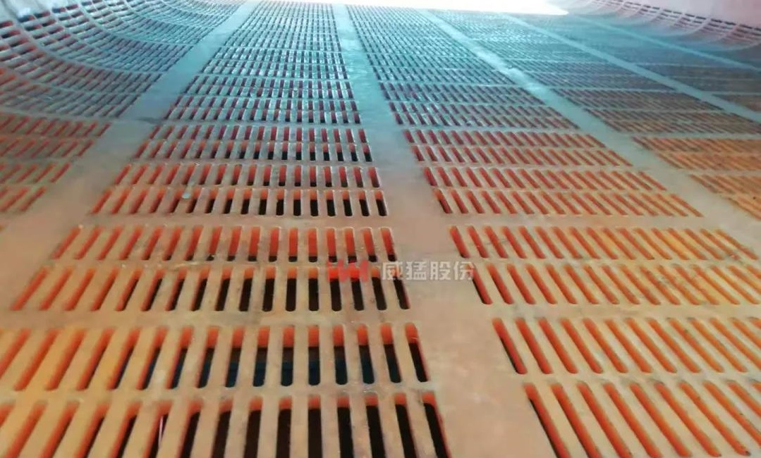 威猛股份在江西某鋼廠使用的是塊礦復(fù)頻篩-C,該篩型篩板分節(jié)振動(dòng)篩箱不參振,可實(shí)現(xiàn)靜態(tài)密封,每節(jié)篩板振幅振頻可根據(jù)現(xiàn)場(chǎng)塊礦特性,處理量大小、粒度組成、含水量等工況條件不同,將振幅在10-20mm之間自由調(diào)整,使物料實(shí)現(xiàn)礦粉分離,改變了傳統(tǒng)的振動(dòng)篩同振源、低振幅、同軌跡的振動(dòng)方式;同時(shí)處理量可達(dá)1200T/H,篩分效率可達(dá)90%。