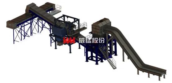 威猛股份通過不斷地研發(fā)與創(chuàng)新,推出了大件垃圾處理系統(tǒng),通過將大件垃圾進(jìn)行破碎、分選,將其中的可回收物進(jìn)行資源化回收,可燃物質(zhì)經(jīng)打包后進(jìn)行轉(zhuǎn)運(yùn)。對(duì)于大件垃圾處置過程中的一些難點(diǎn),威猛股份也進(jìn)行了專門的技術(shù)攻關(guān),并提出了一系列的解決方案。