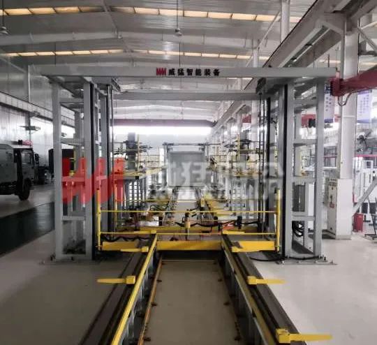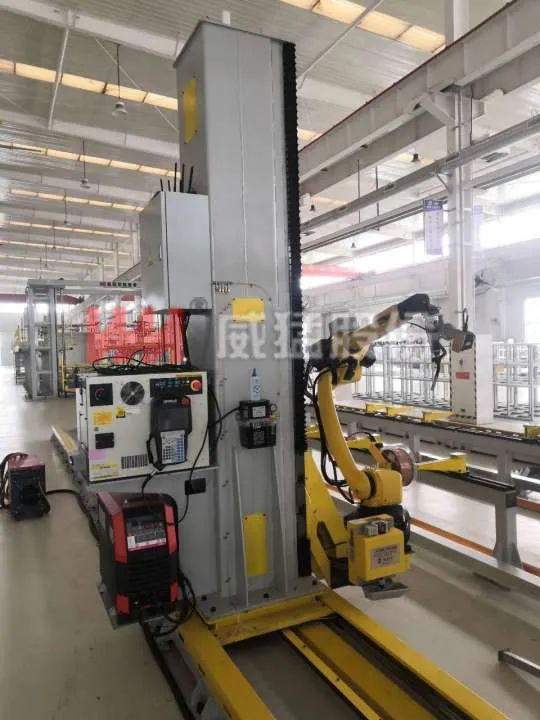 威猛股份為河南新鄉(xiāng)某專汽公司設(shè)計的柔性方艙裝配生產(chǎn)線已正式投入使用,柔性生產(chǎn)線共分為八個工位,每個工位由兩臺焊接機(jī)器人、平移軌道、升降軌道、方艙定位支架構(gòu)成,用于對板件角部、底部、頂部的焊接作業(yè)。