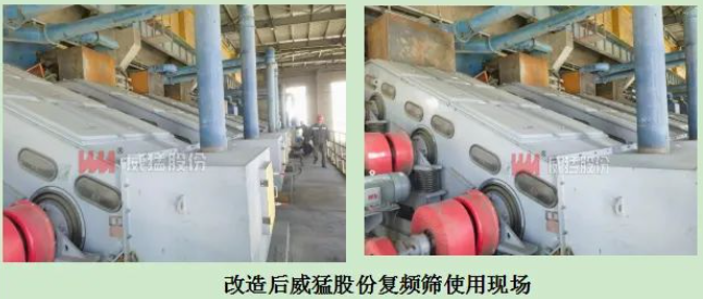 河北某礦企在更換威猛股份的復(fù)頻篩之前,使用的一直是傳統(tǒng)的振動篩,在使用過程中噪音大、粉塵大,使用現(xiàn)場環(huán)境惡劣,且篩分效率一直達不到客戶要求,很大程度上限制了客戶的生產(chǎn)效果。客戶在了解到威猛股份復(fù)頻篩全密封結(jié)構(gòu)及節(jié)能環(huán)保等特點以后,采購復(fù)頻篩進行升級改造,并對威猛股份復(fù)頻篩給予了肯定。