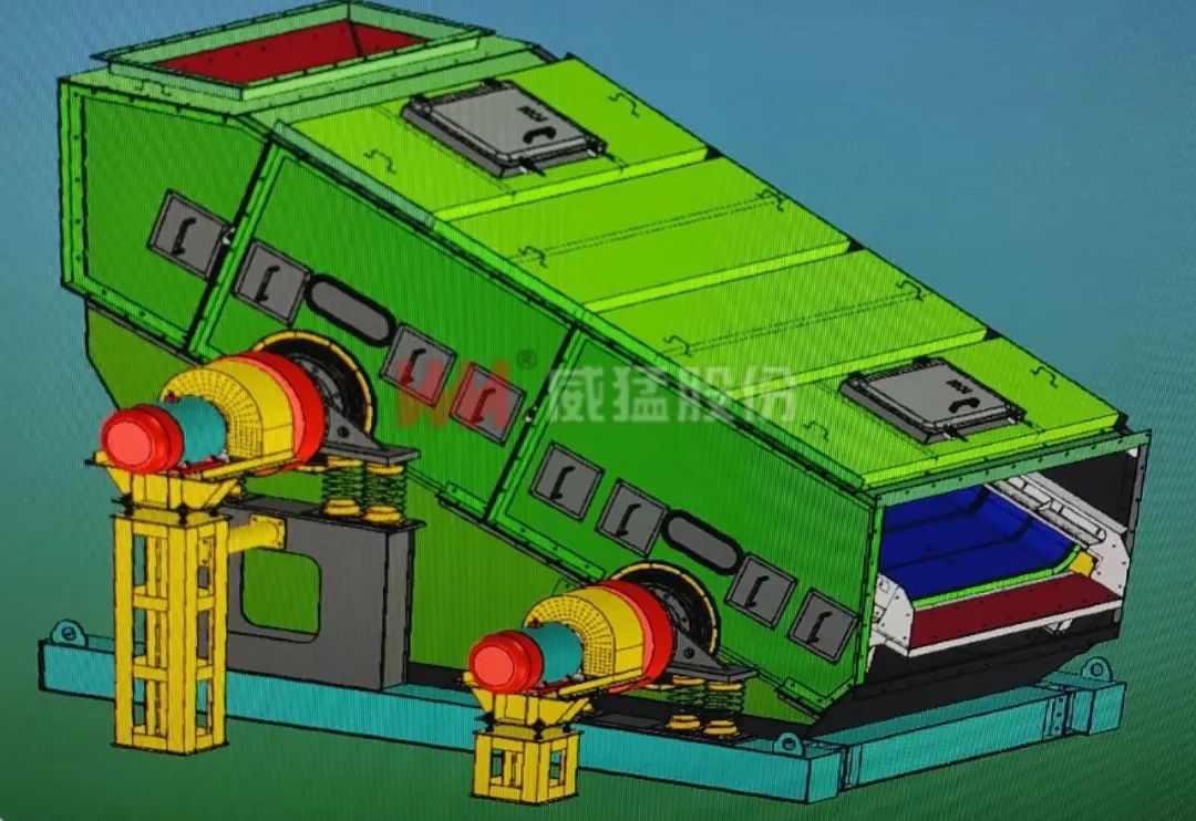產(chǎn)品研發(fā)威猛公司根據(jù)多年的設(shè)計經(jīng)驗,專門針對原料及高爐槽下塊礦開發(fā)了系列新產(chǎn)品粘性塊礦篩分專用篩——復(fù)頻篩-C,該設(shè)備滿足了煉鐵原料廠以及高爐槽下客戶對粘性塊礦篩分處理量大,篩分效果好的要求。工作原理