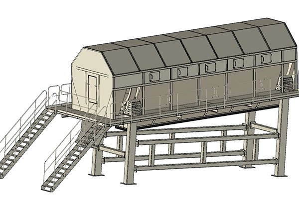 一、工作原理與結構特征威猛股份生產的無軸滾筒篩是通過對顆粒粒徑大小來控制分選的設備,適用于生活垃圾分選。主要由八邊形滾筒、機架、漏斗、減速器、驅動電機及輔助結構等部件組成,物料由輸送設備送入八邊形篩筒