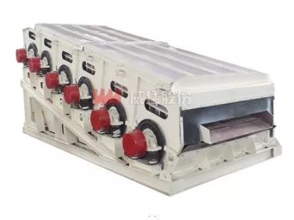 魚鱗篩采用多個(gè)篩分單元組合而成,每個(gè)篩分單元采用獨(dú)立振源驅(qū)動(dòng),各自獨(dú)立振動(dòng),且獨(dú)立篩分單元采用可調(diào)的等厚結(jié)構(gòu)形式,可以通過調(diào)頻調(diào)幅,增加物料與篩面接觸和透篩的概率,提高篩分效率。主要應(yīng)用于煤炭行業(yè)的分