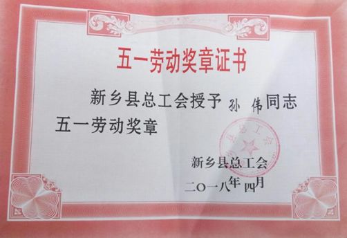 2018年4月26日上午,在新鄉(xiāng)縣商務(wù)中心一樓會(huì)議室召開“2018年新鄉(xiāng)縣慶祝五一國(guó)際勞動(dòng)節(jié)暨五一勞動(dòng)獎(jiǎng)表彰大會(huì)”,河南威猛振動(dòng)設(shè)備股份有限公司孫偉同志
